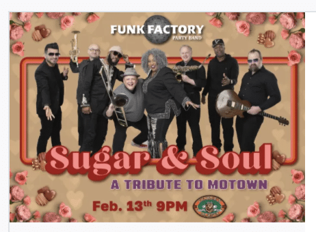 Step into a night of romance, sweets, and timeless music. Sugar & Soul brings the golden era of Motown back to life, from Stevie Wonder’s smooth grooves to Jackson 5, all brought to you by your favorite party band, Funk Factory. Celebrate Valentine’s season surrounded by live music, sweet treats,...
