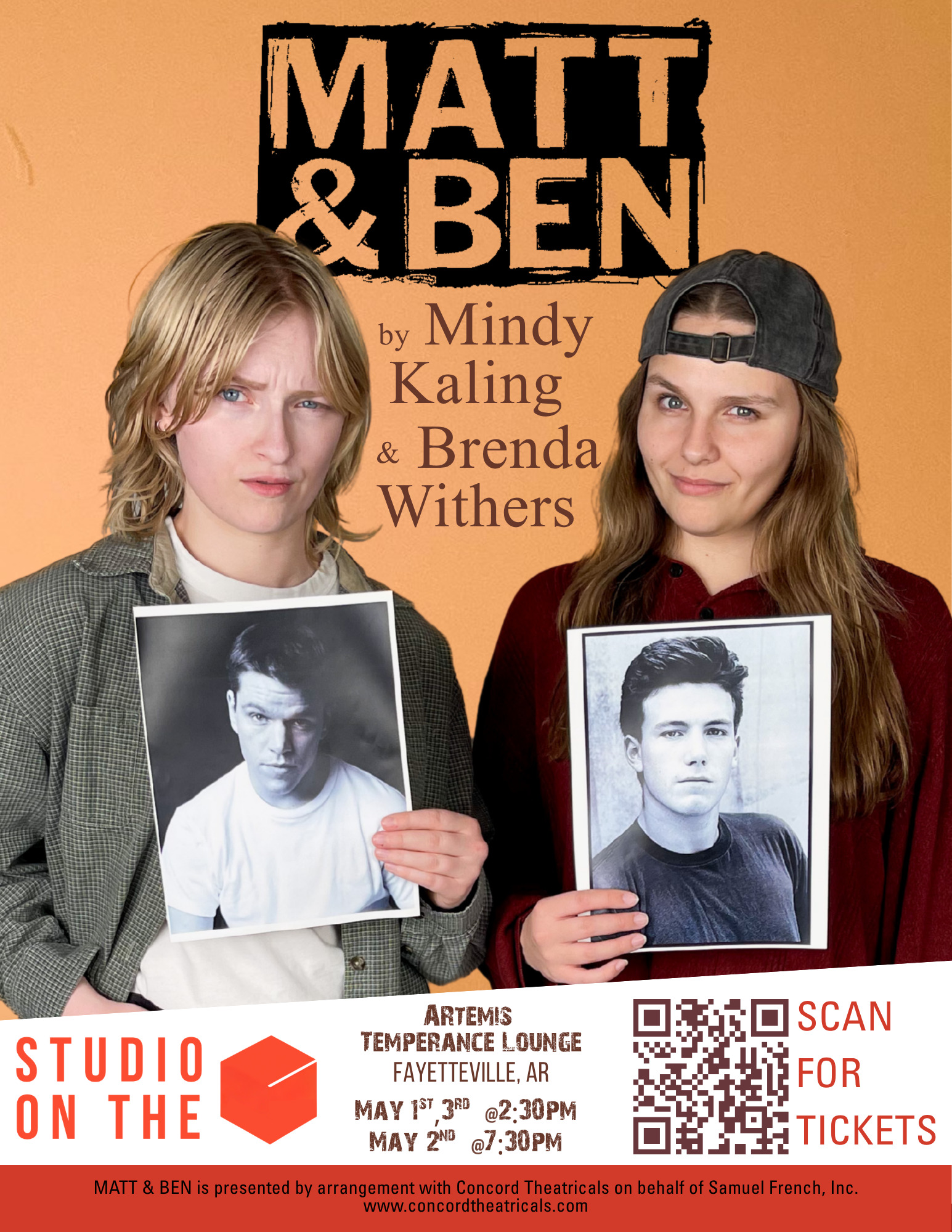 MATT & BEN By Mindy Kaling & Brenda Withers Get ready for a hilarious, fast-paced comedy that rewinds to 1995, before the fame, before J-Lo and Gwyneth, when Matt Damon and Ben Affleck's Good Will Hunting screenplay mysteriously drops from the heavens. Join us for a witty and satirical...